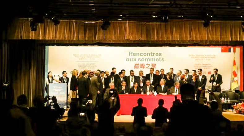 在法国尚贝里市举行的“2022冬奥会•河北冬奥合作(法国)”推介会上,河北省与奥罗阿大区签订协议,正式建立了友好省区关系;张家口市与尚贝里市缔结友好城市并进行了合作项目签约;蓝鲸控股集团董事长张文瑞与MND公司董事长泽维尔就双方达成的战略合作协议进行了深入交流,并签署了户外项目采购合同。此举进一步开拓了双方在冰雪项目上的合作,将对张家口冰雪旅游产业的发展起到更好的推动作用。